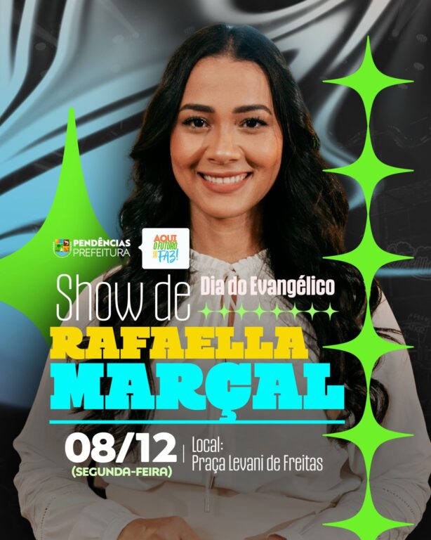 Hoje celebramos o Dia do Evangélico, uma data especial marcada por fé, gratidão e união entre as famílias de Pendências. E para tornar este momento ainda mais significativo, teremos um grande show com a cantora Rafaella Marçal, trazendo louvor, adoração e uma mensagem de esperança que promete emocionar a todos. Uma noite preparada com muito […]