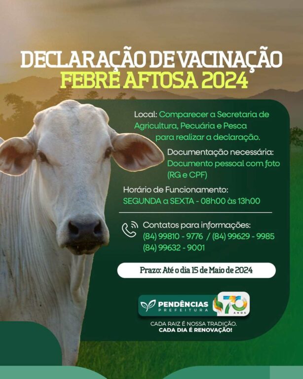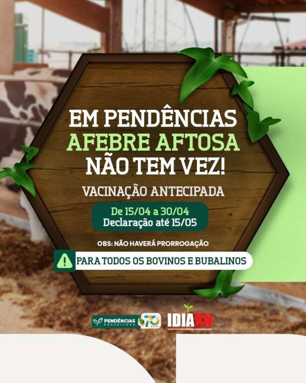 A Prefeitura Municipal de Pendências, por meio da Secretaria de Agricultura, Pecuária e Pesca, realizou mais uma Campanha de Vacinação contra a Febre Aftosa para os agricultores e agricultoras do município. Essa atividade objetiva imunizar o rebanho local, visando garantir a sanidade dos animais e a qualidade dos produtos derivados. A Prefeitura reafirma seu compromisso […]