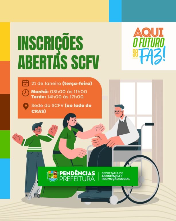 As inscrições para o Serviço de Convivência e Fortalecimento de Vínculos (SCFV) estão abertas! Oferecendo oportunidades para crianças, adolescentes, adultos e idosos participarem de atividades socioeducativas e culturais que visam fortalecer os vínculos familiares e comunitários. O SCFV é uma importante ferramenta de promoção de cidadania e inclusão social, proporcionando espaços de aprendizagem, integração e […]