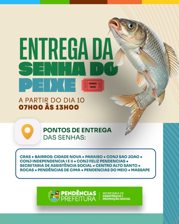 A entrega da senha do peixe da Semana Santa já começou! Moradores devem procurar o ponto de distribuição do seu Bairro para garantir a retirada. Fique atento às datas e horários, e não deixe para a última hora. Essa ação tem como objetivo manter a tradição e apoiar as famílias durante este período especial. Vá […]