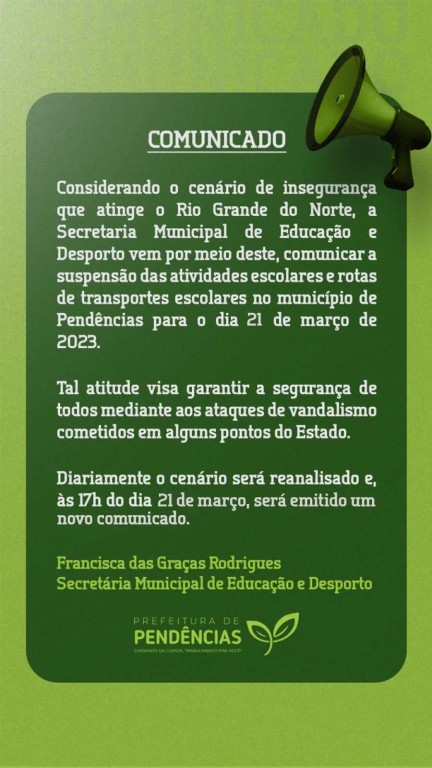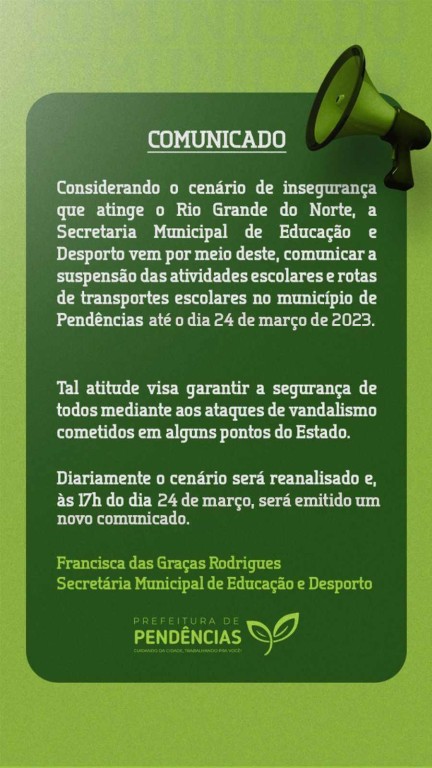 Em virtude da segurança do Estado que o governo vem propondo, a Secretaria Municipal de Educação e Desporto anuncia reabertura das Escolas, e circulação da frota escolar, a partir desta Segunda Feira (27).