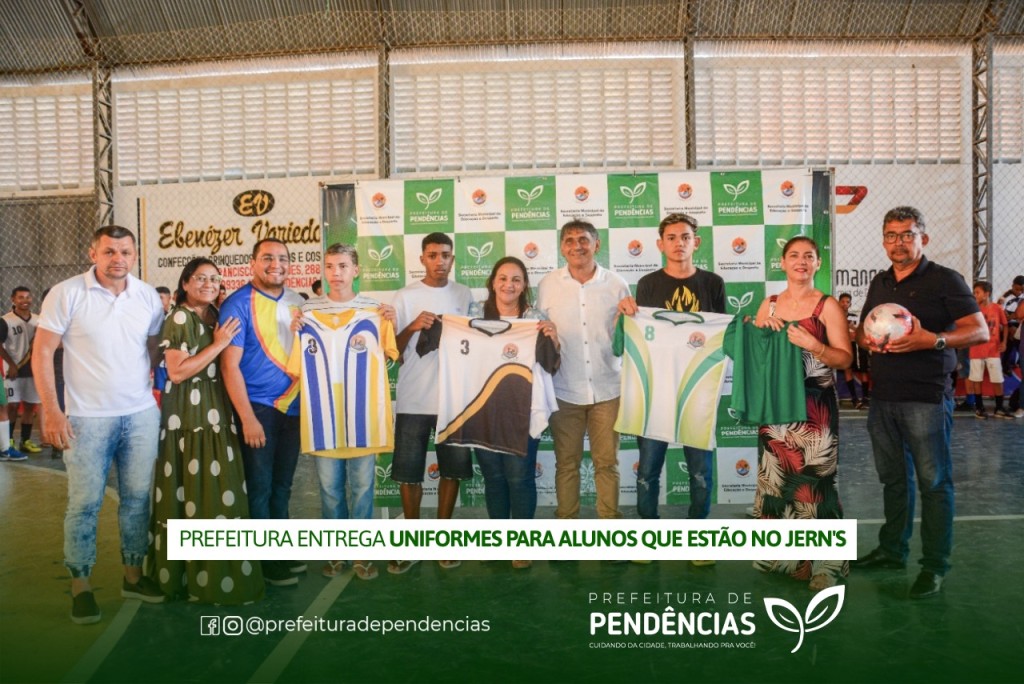 Na última sexta (16), a Prefeitura de Pendências através da Secretaria Municipal de Educação e Desporto fez a entrega de novos uniformes para os alunos do município que estão jogando no JERN’S e estão representando nossa cidade.