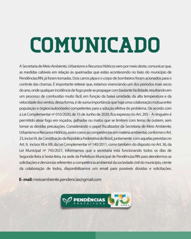 O meio ambiente é nosso amigo, e como todo bom amigo, merece cuidado, respeito e atenção. Neste Dia Mundial do Meio Ambiente, a Prefeitura de Pendências reforça o compromisso com práticas sustentáveis e ações que protejam nossos recursos naturais. Cada atitude conta: economize água, recicle, plante uma árvore e espalhe consciência. Porque quando cuidamos da […]