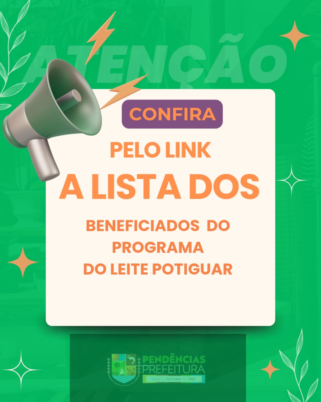 A Secretaria de Assistência Social informa que já está disponível a lista dos beneficiados do Programa Leite Potiguar, iniciativa que garante o acesso das famílias em situação de vulnerabilidade social a um alimento essencial para a saúde e a nutrição. Confira a relação completa e fique atento às orientações para o recebimento do benefício.
