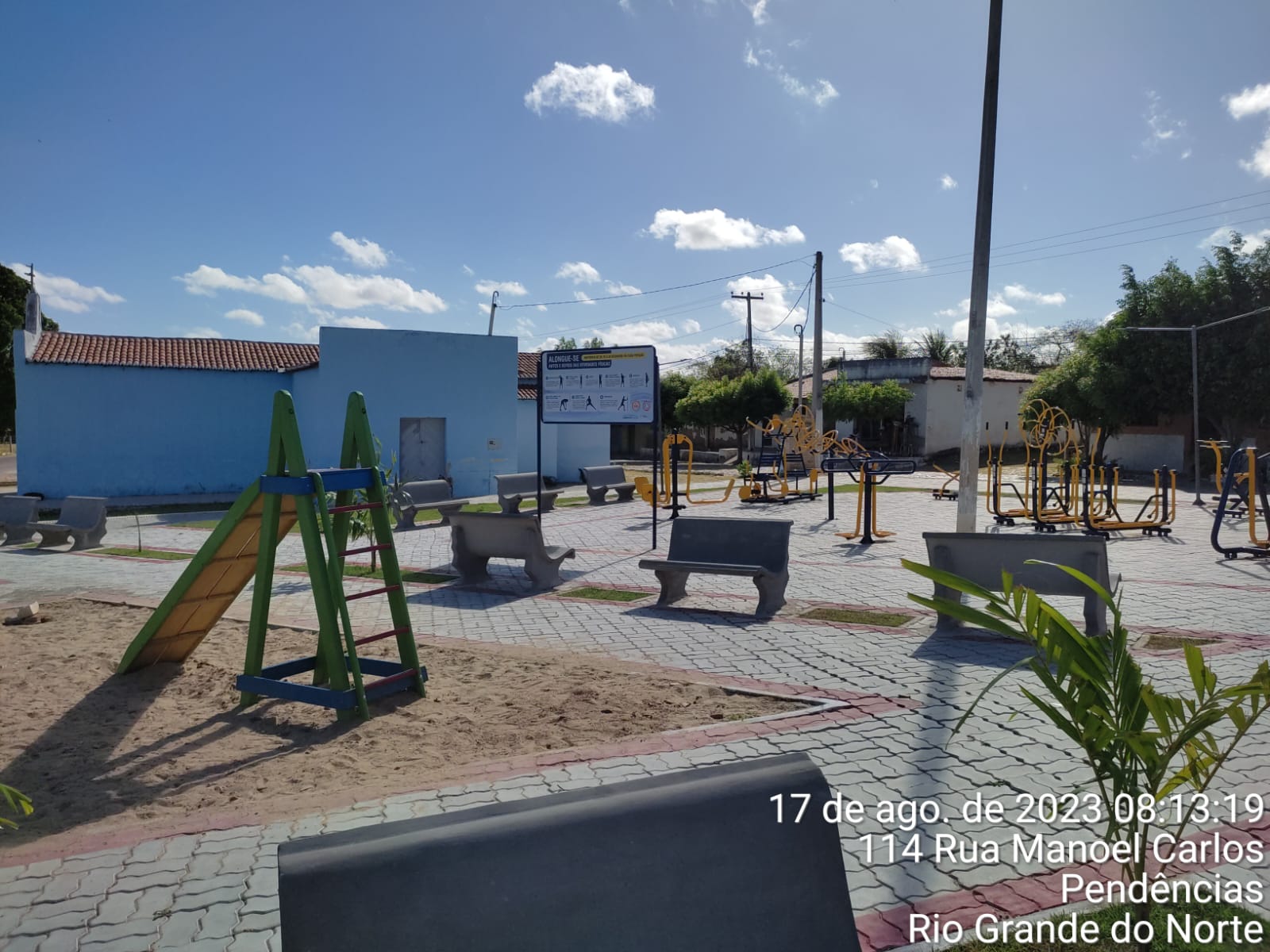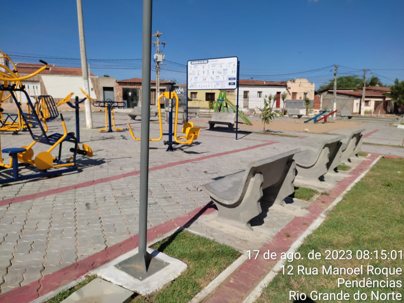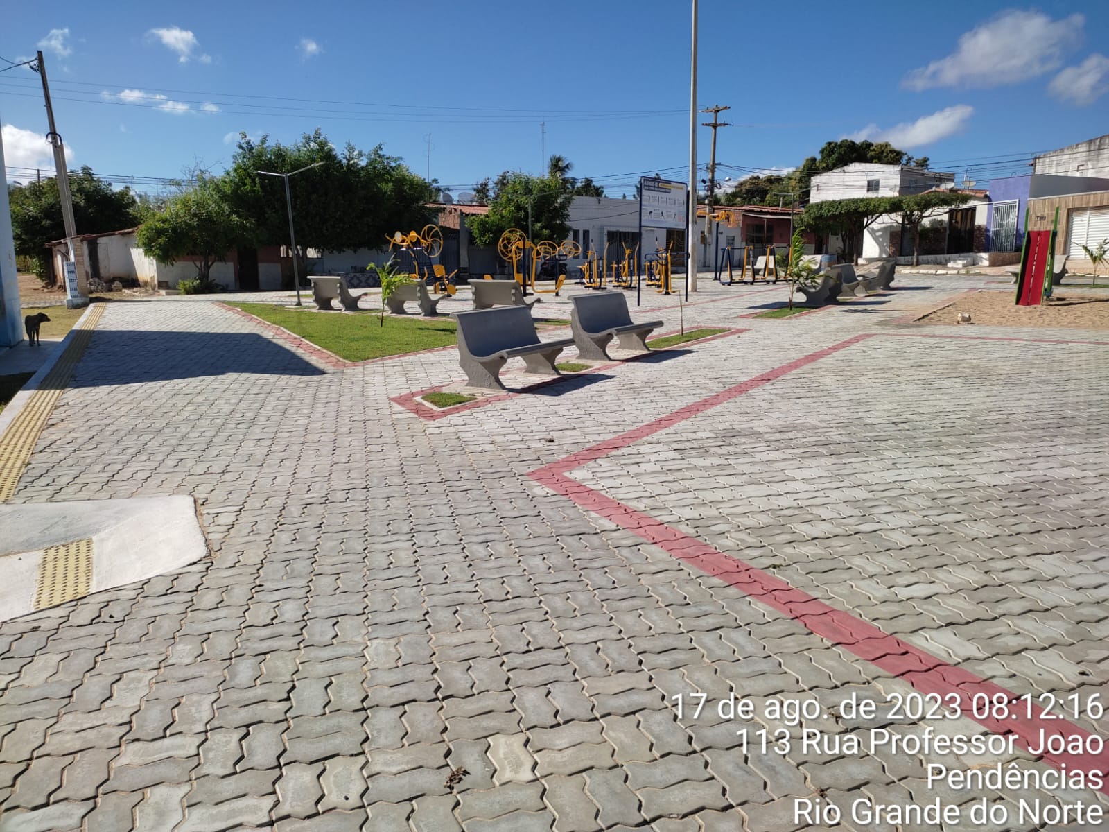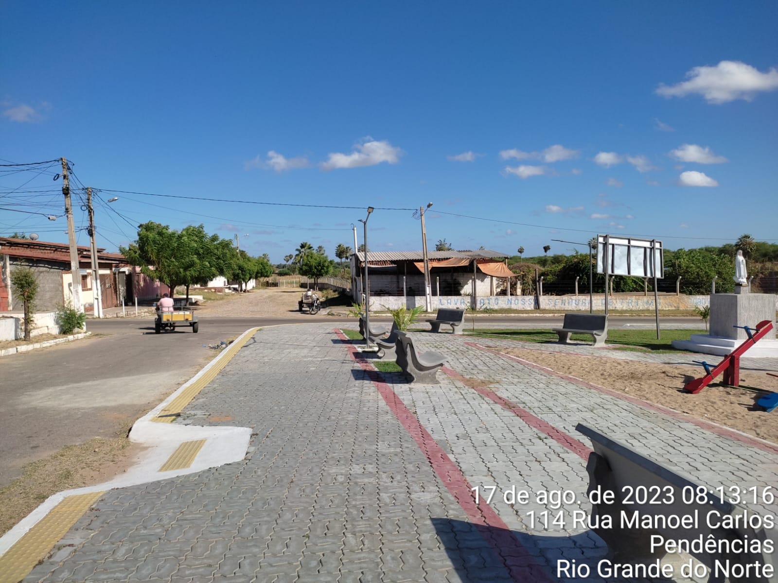 Descrição: Reforma da Praça Nossa Senhora de Fátima, localizada na comunidade de Pendências de Cima, no município de Pendências/RN, contemplando serviços de recuperação de calçadas, piso, bancos, paisagismo, pintura, instalação de iluminação pública e adequações para acessibilidade, visando revitalizar o espaço público e proporcionar mais conforto e segurança à população