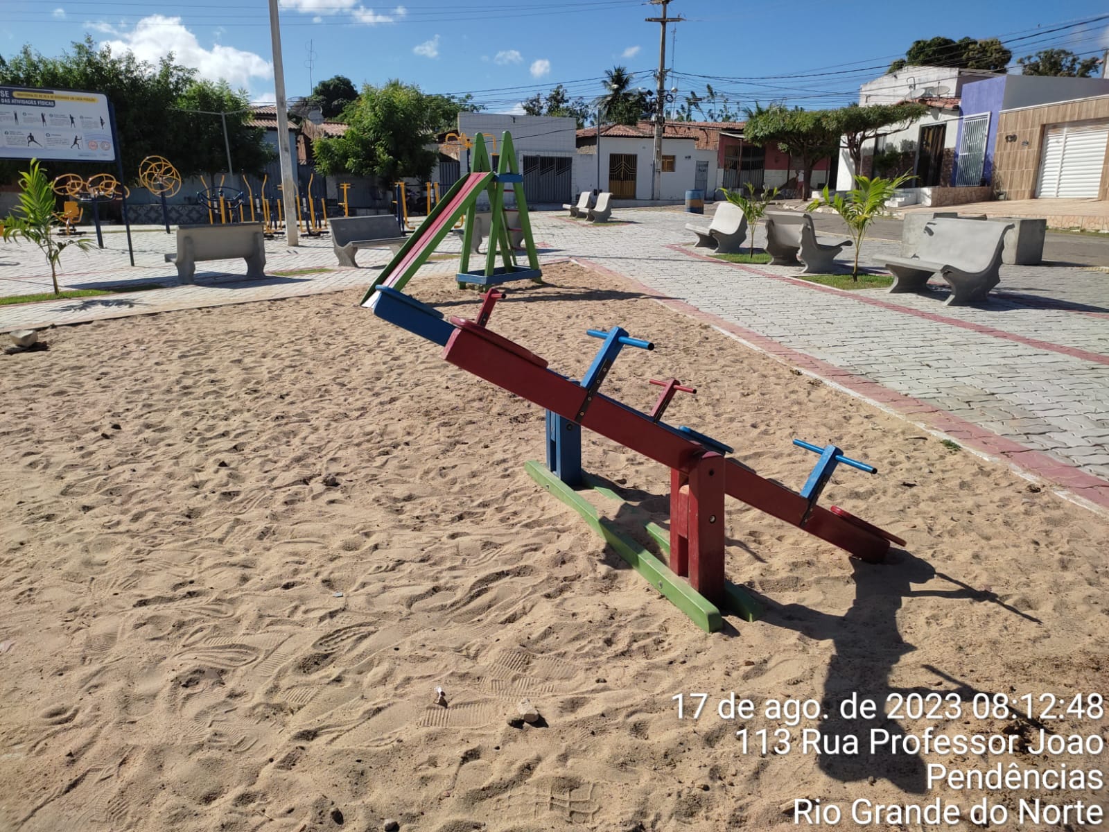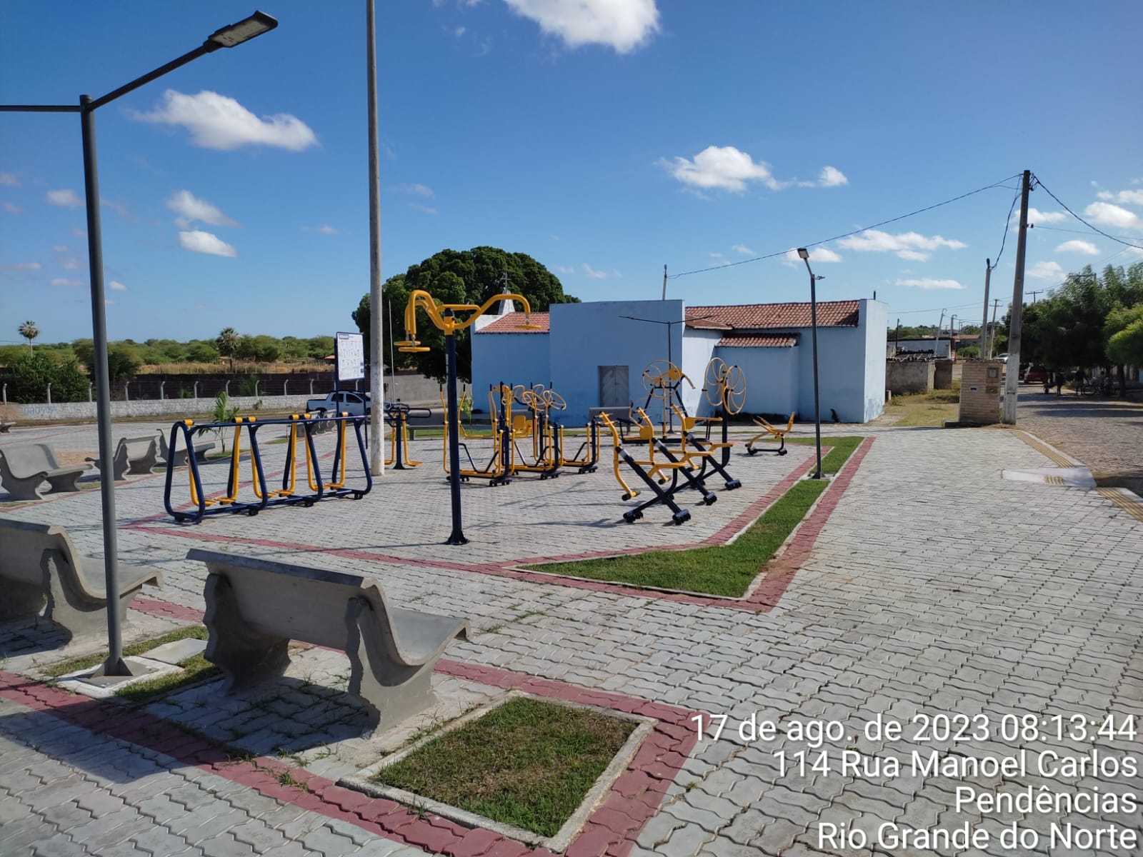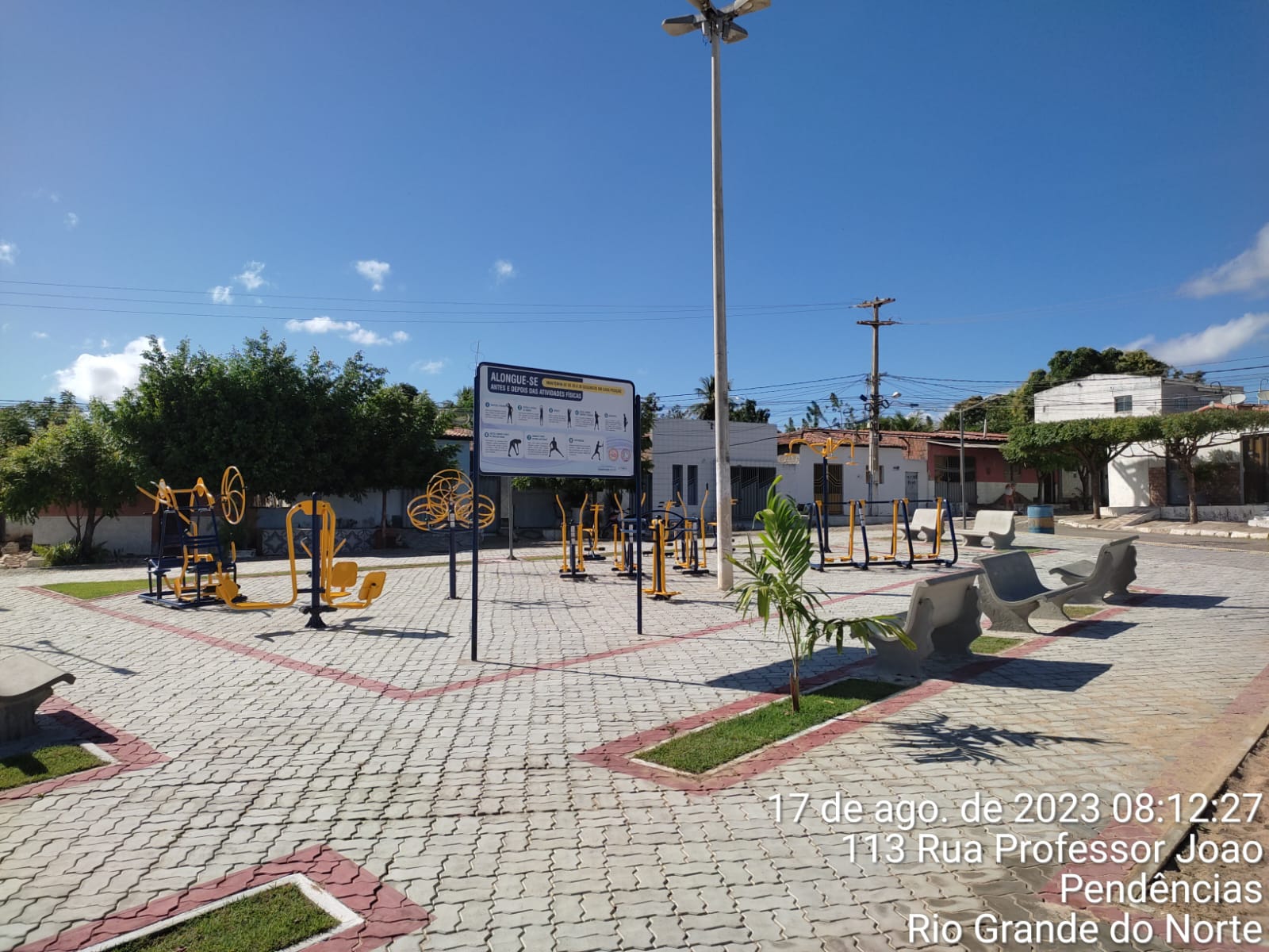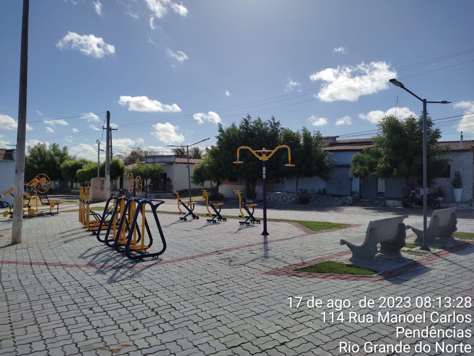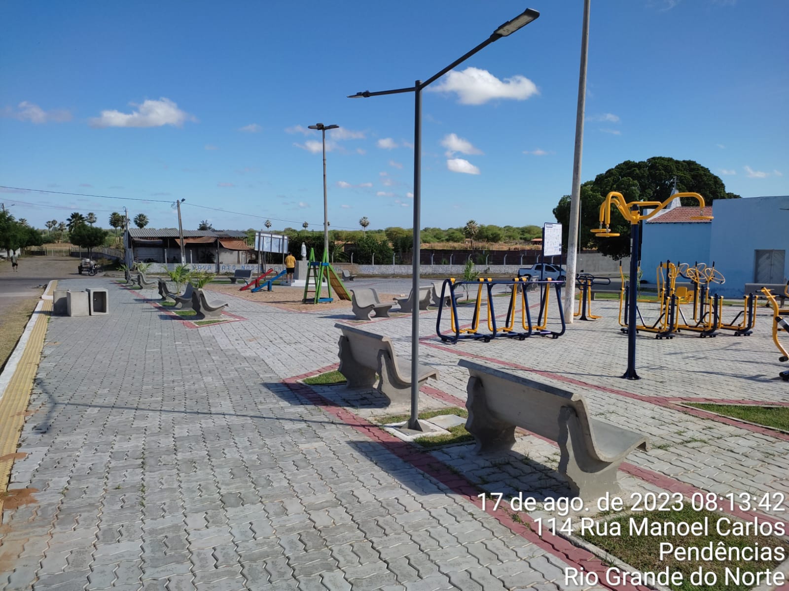 Descrição: Reforma da Praça Nossa Senhora de Fátima, localizada na comunidade de Pendências de Cima, no município de Pendências/RN, contemplando serviços de recuperação de calçadas, piso, bancos, paisagismo, pintura, instalação de iluminação pública e adequações para acessibilidade, visando revitalizar o espaço público e proporcionar mais conforto e segurança à população
