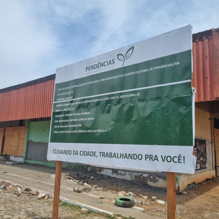 Descrição: Serviço de reforma e revitalização da Rodoviária Municipal de Pendências/RN, com a implementação de um Centro Cultural, visando a recuperação da infraestrutura existente e a ampliação do uso do espaço para atividades culturais e comunitárias. A obra contempla a reestruturação de áreas internas e externas, melhorias em acessibilidade, adequação das instalações elétricas e hidráulicas, substituição de revestimentos, pintura, paisagismo e a criação de ambientes apropriados para exposições, oficinas, apresentações e eventos culturais, promovendo o fortalecimento da identidade local e o acesso à cultura.