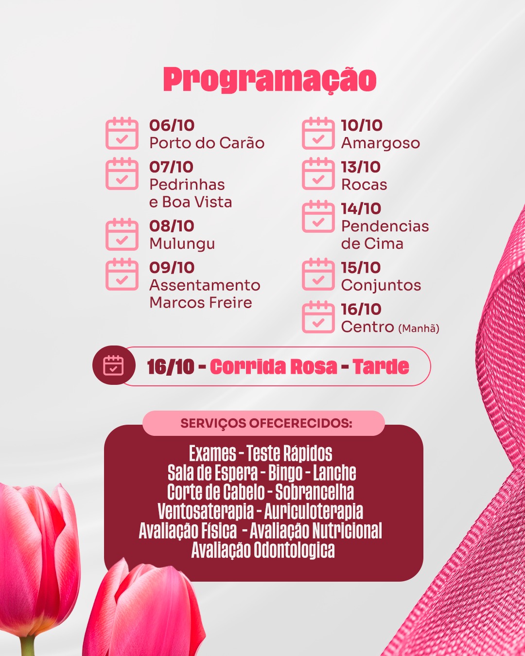 De 6 a 16 de outubro, preparamos uma programação especial repleta de serviços para as nossas incríveis mulheres! 🌸✨