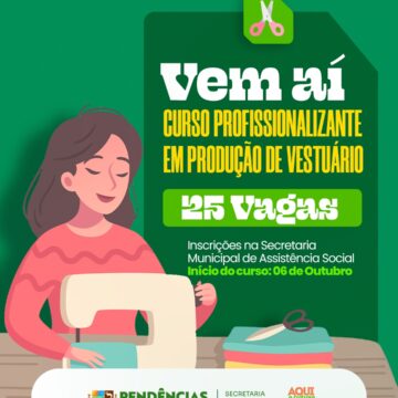 A Prefeitura de Pendências está investindo em capacitação profissional e traz uma ótima oportunidade em parceria com o SEBRAE: Curso Profissionalizante em Produção do Vestuário 👗✂️