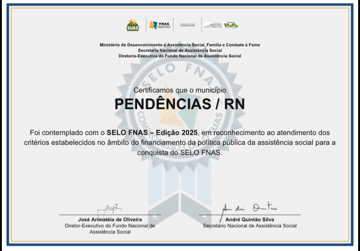 Compromisso com a boa gestão no SUAS!O Selo FNAS é mais do que uma certificação é o reconhecimento de um trabalho sério, comprometido e responsável com a Política de Assistência Social.Ele valoriza os entes que priorizam o aprimoramento da gestão orçamentária, financeira e contábil, fortalecendo o financiamento e a execução dos serviços nas Proteções Sociais Básica e Especial.Investir em uma gestão qualificada é garantir que os recursos cheguem onde realmente importam: na vida das pessoas que mais precisam.