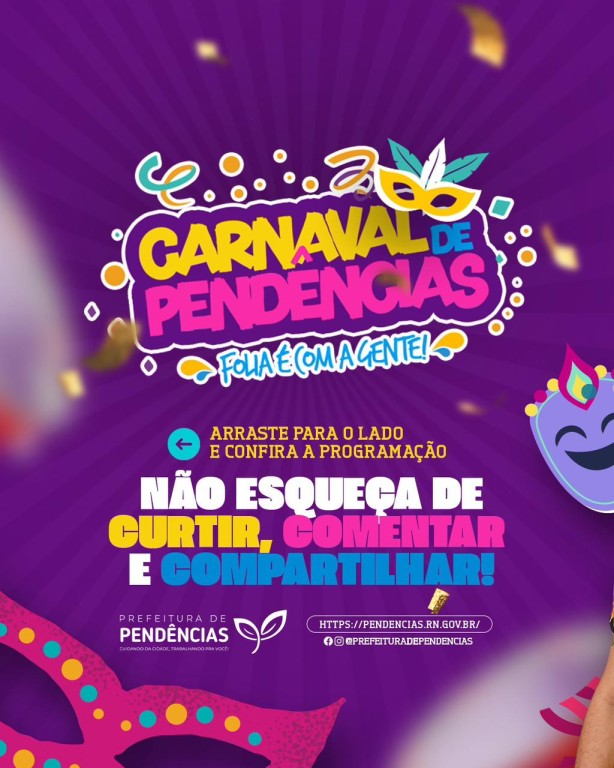 A TRADIÇÃO DO CARNAVAL SEGUE VIVA EM PENDÊNCIAS! ✅ Em 2026, Pendências vai viver esse momento especial que faz parte da nossa história, da nossa cultura e da alegria do nosso povo. O Carnaval tomará conta da cidade, mantendo viva uma tradição que atravessa gerações e transforma as ruas em espaço de encontro e celebração. […]