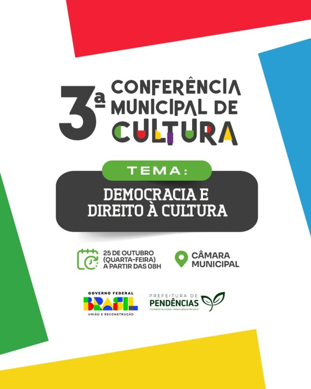 Vem aí, a 3º Conferência Municipal de Cultura. Com o tema: Democracia e Direito a Cultura