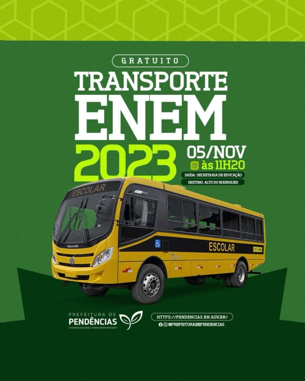ENEM – Transporte escolar gratuito para os alunos que irão realizar as provas.