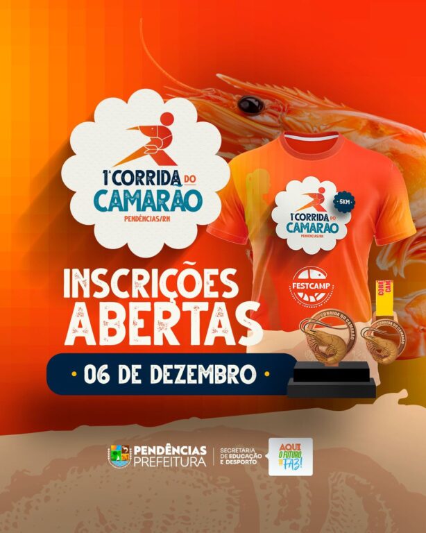 Vem aí a 1ª Corrida do Camarão em Pendências! A corrida está dentro da programação do aniversário da Cidade, será um evento esportivo que promete movimentar a cidade, celebrando saúde, lazer e o espírito esportivo da nossa gente. Prepare seu tênis, reúna os amigos e venha fazer parte dessa grande festa que une esporte e […]