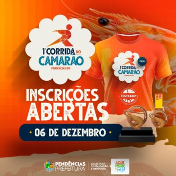Vem aí a 1ª Corrida do Camarão em Pendências! A corrida está dentro da programação do aniversário da Cidade, será um evento esportivo que promete movimentar a cidade, celebrando saúde, lazer e o espírito esportivo da nossa gente. Prepare seu tênis, reúna os amigos e venha fazer parte dessa grande festa que une esporte e tradição, marcando mais um momento especial na programação do município! Se inscreva através do LINK http://ingresso84.com.br/evento/680/1a-corrida-do-camarao