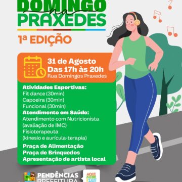 Vem aí a 1ª edição do Domingo na Praxedes, a 1ª edição acontece neste domingo, dia 31, e será recheada de atividades para toda a família um momento especial preparado para toda a família, com lazer, cultura, música e diversão no coração da nossa cidade. Uma programação pensada para reunir a comunidade, promover integração e valorizar os talentos locais, transformando o domingo em um dia de alegria e convivência saudável para todos.