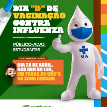 Vem aí o Dia de Vacinação contra a Influenza! Uma oportunidade importante para reforçar a proteção da sua saúde e da sua família. Fique atento à data e aos locais de vacinação na sua região e não perca a chance de se prevenir contra o vírus da gripe. Vacinar é um ato de cuidado e responsabilidade!