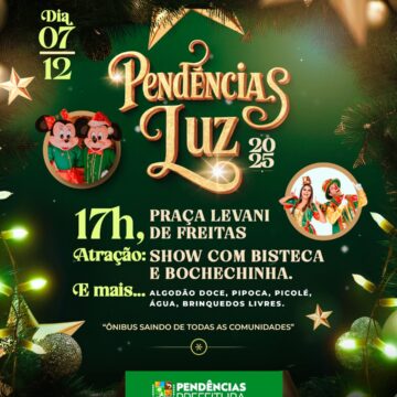 Vai ter show especial, personagens, doces, brinquedos e aquele clima natalino que só Pendências sabe fazer.